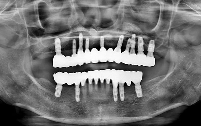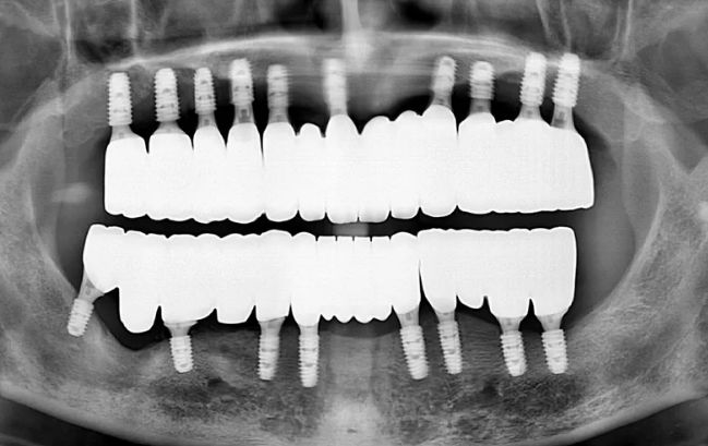 80대 남성, 무치악 전체 임플란트 17개 식립