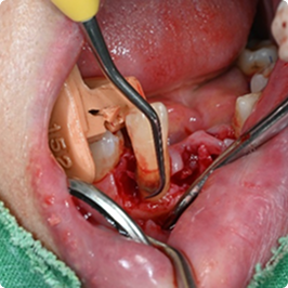 - 치주수술 + 엠도게인 적용으로 잇몸과 잇몸뼈 재생 유도