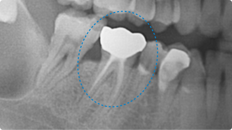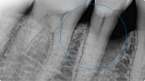 반대로 너무 넓게 뼈가 소실된 경우, 뿌리 갈라짐 3급, 뿌리 균열 등은 재생 효과가 제한됩니다.